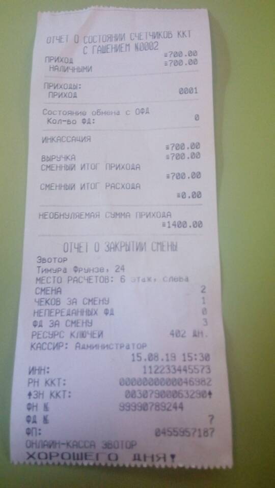 - Обязательное закрытие смены не реже 1 раза в 24 часа